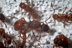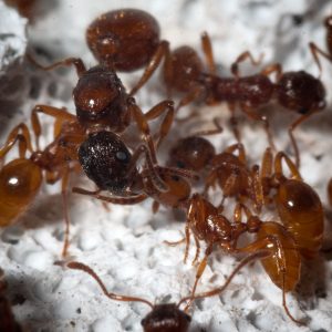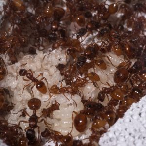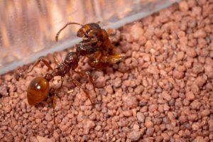 • Le operaie di M. rubra sono attive e propense a modificare il proprio habitat in base alle esigenze. Questo significa che tenderanno a scavare e distruggere ogni genere di materiale grezzo, decorazioni, arene, sfilare il cotone dalle provette, sigillare il formicaio con detriti, masticare tubi di connessione, ecc…