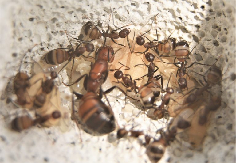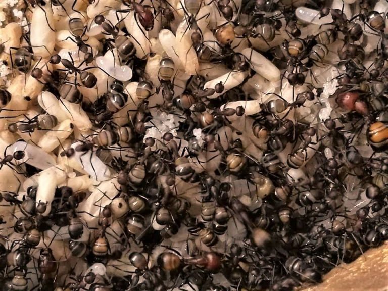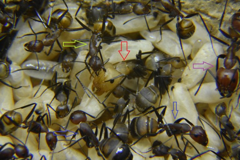 Nei nidi poi, si trovano solo alcuni stadi di sviluppo larvale e non l’intero corredo solitamente formato da uova, larve in varie fasi di crescita e pupe. Queste colonie spesso accusano grosse perdite durante il periodo freddo ma, una grande percentuale di esse riesce a ripartire non appena il termometro risale a valori attorno ai 23°C -25°C.