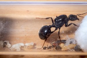 - M. capitatus è molto attiva e propensa a modificare il proprio habitat in base alle esigenze. Questo significa che le colonie adulte tenderanno a scavare e distruggere ogni genere di materiale grezzo, decorazioni, arena, sfilare il cotone dalle provette, sigillare il formicaio con detriti, masticare tubi di connessione, ecc…